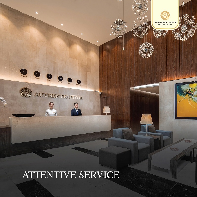 Authentic Hanoi Boutique Hotel nổi bật với phong cách phục vụ tận tâm – mọi nhu cầu của khách hàng đều được đáp ứng nhanh chóng và tinh tế, từ việc hỗ trợ đặt tour, thuê xe đến dịch vụ phòng 24/7.