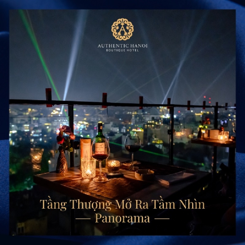 Nhà hàng Panorama nằm trên tầng cao của khách sạn Authentic Hanoi Boutique Hotel, hướng thẳng ra Hồ Gươm và khu phố cổ rực rỡ ánh đèn. Không gian mở, thoáng đãng với tầm nhìn 360 độ cho phép bạn ngắm trọn trung tâm Hà Nội lung linh trong đêm – nơi những hàng cây, mái ngói và ánh đèn đường hòa quyện thành bức tranh huyền ảo.