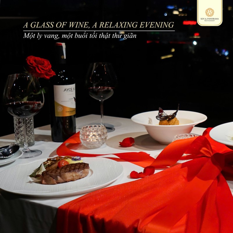 Sau bữa tối, cả hai có thể chuyển sang không gian nhẹ nhàng hơn để thưởng thức một ly vang. Tại Sen & Panorama, vang được chọn lọc kỹ lưỡng, phù hợp nhiều khẩu vị và vừa đủ để tạo nên không khí sang trọng mà vẫn thoải mái. Đây là thời điểm lý tưởng để mở những cuộc trò chuyện sâu hơn, chia sẻ những dự định, cảm xúc hoặc chỉ đơn giản là lắng nghe nhau.