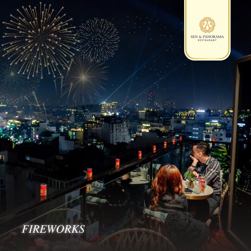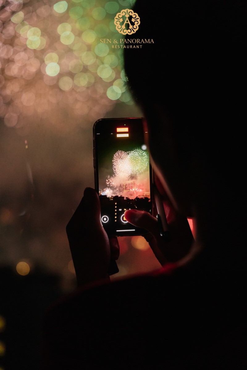 Ánh sáng ấm áp, không gian thoáng đãng và cách bố trí tinh tế giúp nhà hàng luôn giữ được sự riêng tư cần thiết. Từ đây, bạn có thể dễ dàng ngắm pháo hoa từ trên cao mà không phải chen chúc hay di chuyển nhiều. Ẩm thực được phục vụ trong đêm đặc biệt cũng được chăm chút kỹ lưỡng, mang đến trải nghiệm trọn vẹn cả về vị giác lẫn cảm xúc.