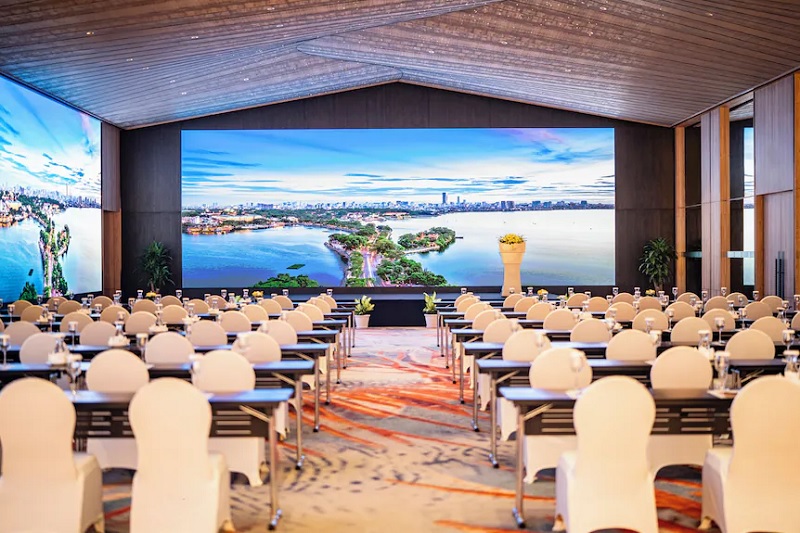 Melia Hanoi nằm ngay trung tâm quận Hoàn Kiếm, là địa chỉ quen thuộc cho các doanh nghiệp cần không gian tổ chức sự kiện. Phòng họp được thiết kế sang trọng theo phong cách châu Âu, có thể chia nhỏ hoặc mở rộng tùy quy mô. Dịch vụ hỗ trợ hội nghị chuyên nghiệp và ẩm thực phong phú cũng là điểm cộng lớn của khách sạn này.