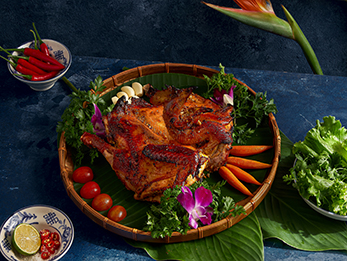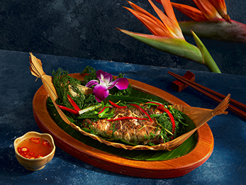Swai Fish, Banana Leaves, Garlic, Onion, Ginger, Carrot