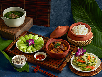 Clam, Fresh Onion, Bean Sprouts, Tomato/ Field Crab, Malabar Spinach, Loofah